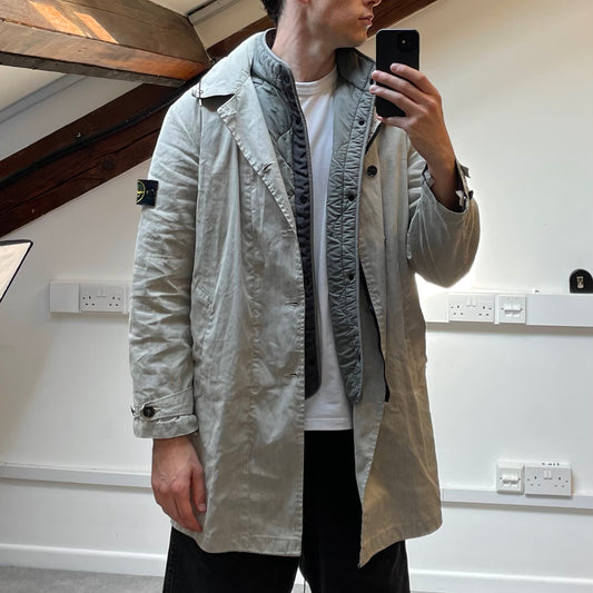 Stone Island Grey Trench Coat w/ Detachable Liner & Concealed Hood AW04