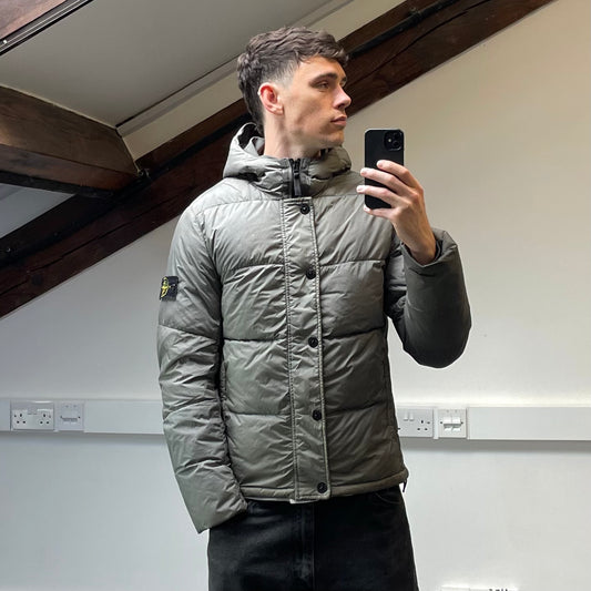 Stone Island Grey Garment Dyed Crinkle Reps NY Down Hooded Puffer Jacket AW15