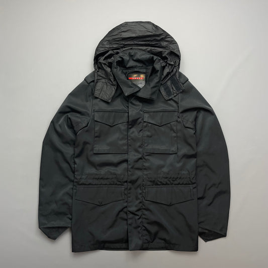 Prada Sport Black Multi-Pocket 2007 Field Jacket w/ Concealed Hood