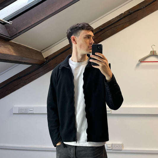 Prada Sport Black Lightweight Nylon Panel Fleece Jacket
