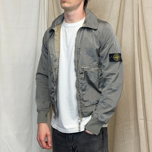 Stone Island Silver Grey SS08 Nylon Metal Archivio Concealed Hood Lightweight Bomber Jacket