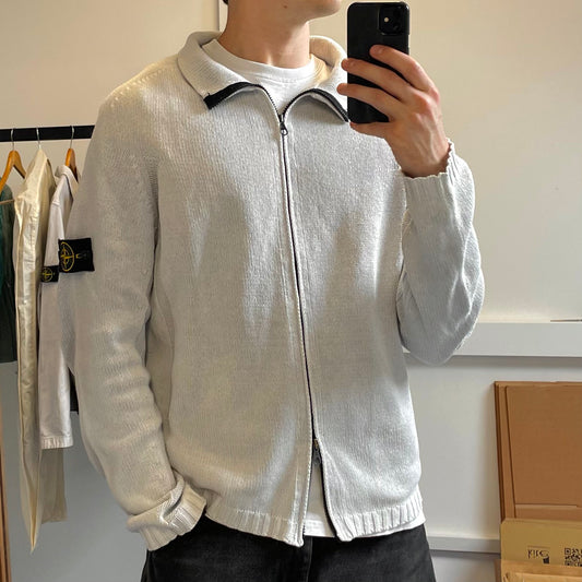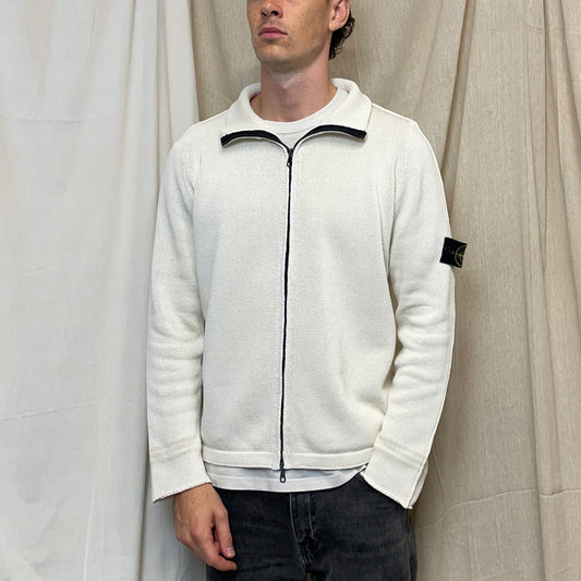 Stone Island White Zip-Through Knit Jumper SS03