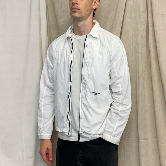 Stone Island White SS05 Technical Spiral-Stitch Lightweight Spellout Overshirt Jacket