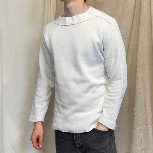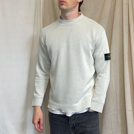 Stone Island White SS96 Chenille Knit Scoop Neck Green Edge Badge Jumper