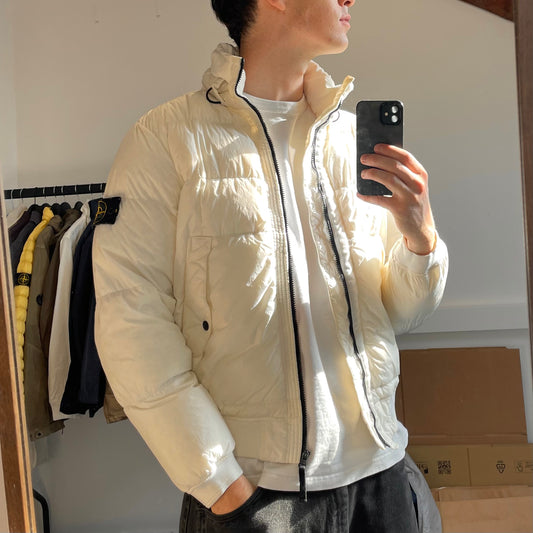 Stone Island White Crinkle Reps Nylon Down Puffer Jacket