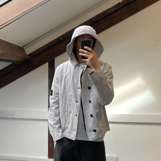 Stone Island White Cotton Spalmatura Hooded Jacket SS07