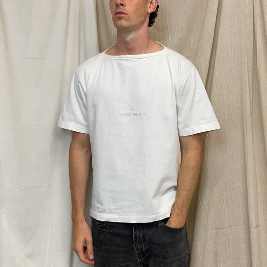 Stone Island White 80s Boat Neck Spellout Oversized T-Shirt