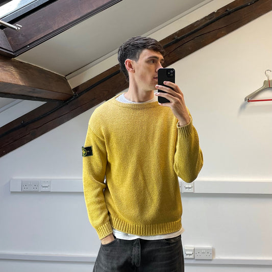Stone Island Yellow Midweight 80s Vintage Knit Jumper w/ Green Edge BadgeRegular price £230.00 GBPRegular priceUnit price / per-