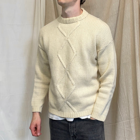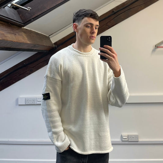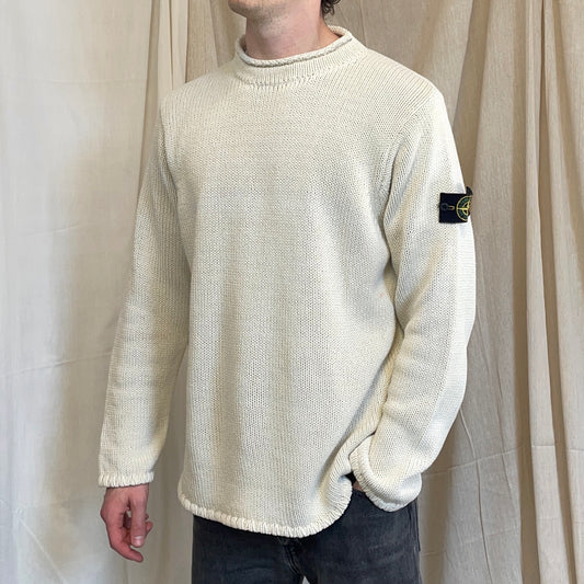 Stone Island Cream AW97 Chunky Wool Knit Green Edge Badge Crewneck Jumper