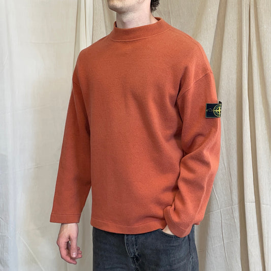 Stone Island Orange SS94 Wool Mockneck Green Edge Badge Knit Jumper