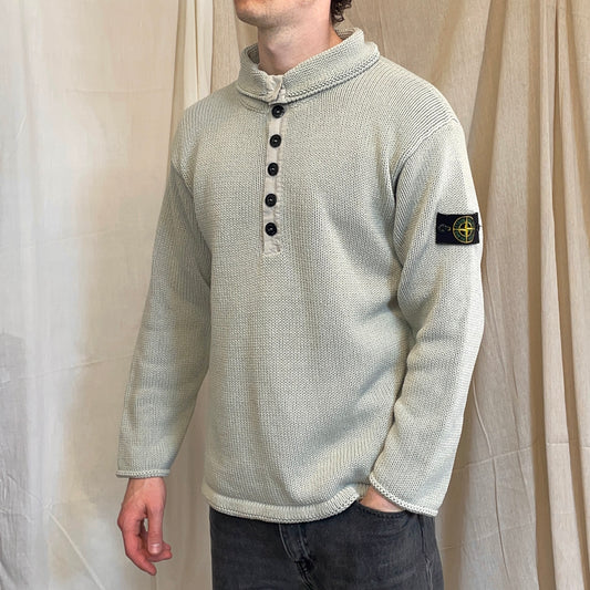 Stone Island Grey SS00 Heavyweight Button Collar Knit Jumper