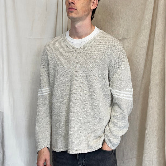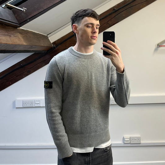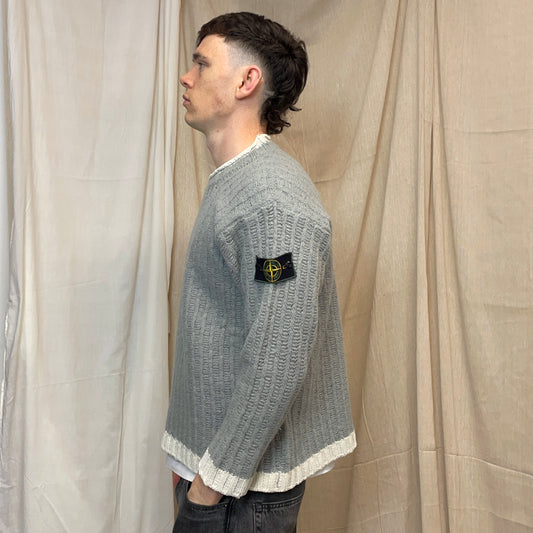 Stone Island Grey & White AW95 Green Edge Badge Wool Knit Jumper