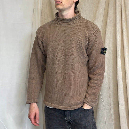 Stone Island Brown AW98 High-Neck Wool Knit Jumper