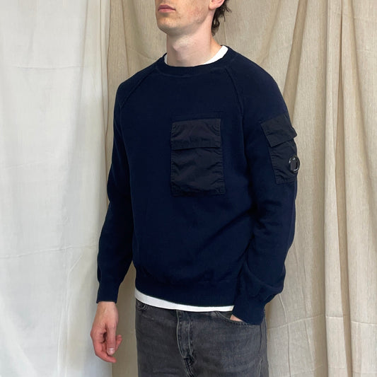 C.P. Company Navy & Black Nylon Pocket Knit Lens Jumper