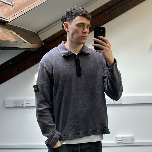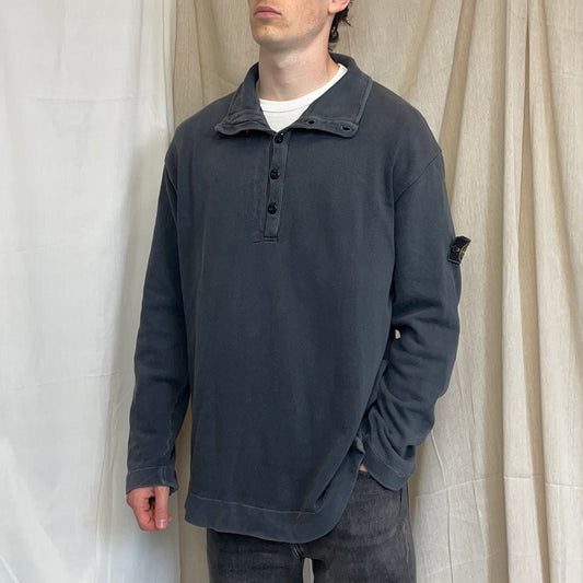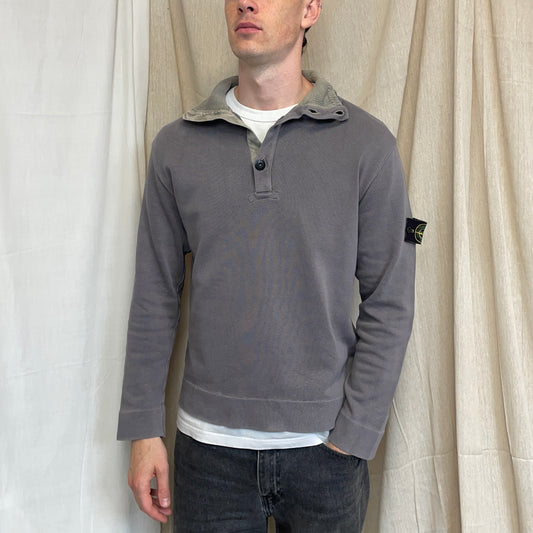 Stone Island Grey SS04 Cotton Half-Zip Snap-Button Hem Jumper