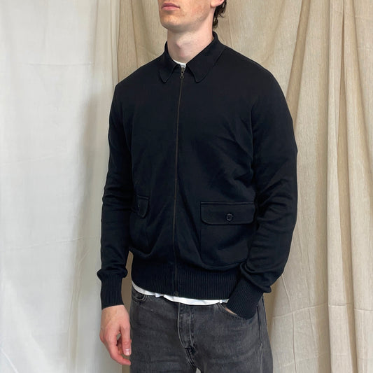 Prada Sport Black 2008 Cotton Knit Zip-Through Collared Cardigan