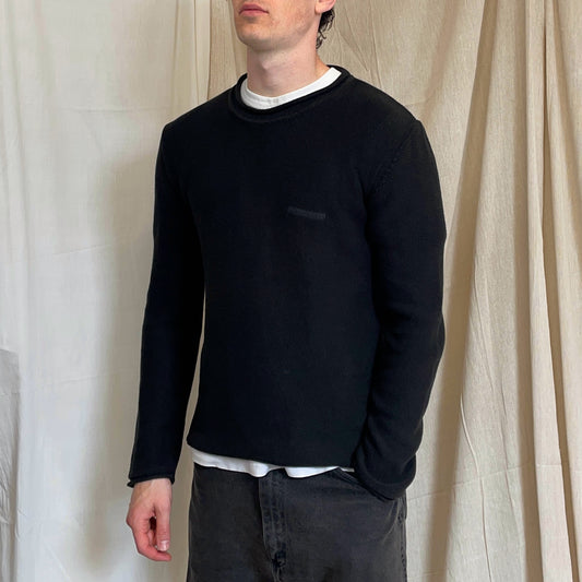 Armani Jeans 00s Black Raw-Edge Knit Jumper
