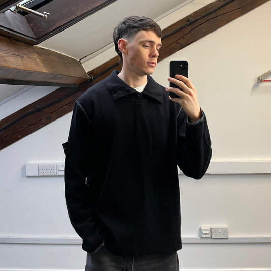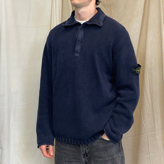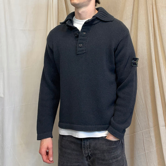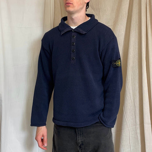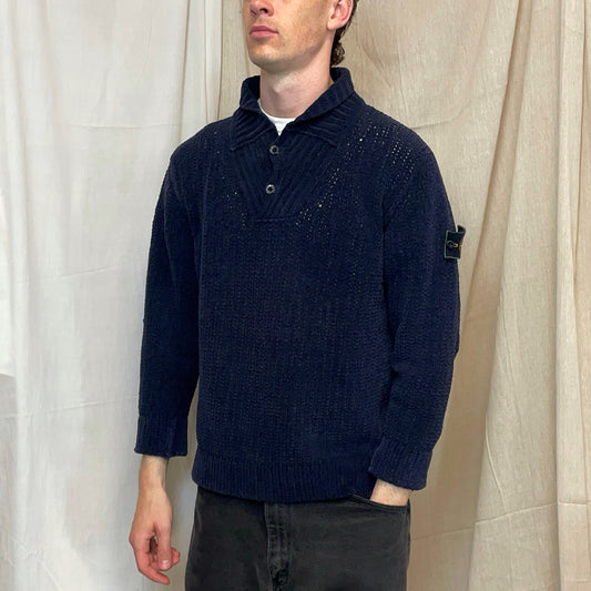 Stone Island Navy SS00 Heavyweight Button Collar Knit Jumper