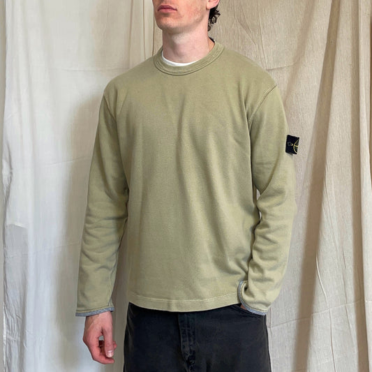 Stone Island Olive Green AW03 Cotton Collar & Cuff Trim Jumper