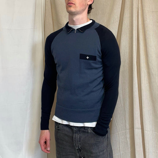 Stone Island Denims Blue & Navy AW03 Wool Zip Collar Knit Jumper