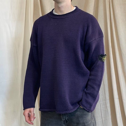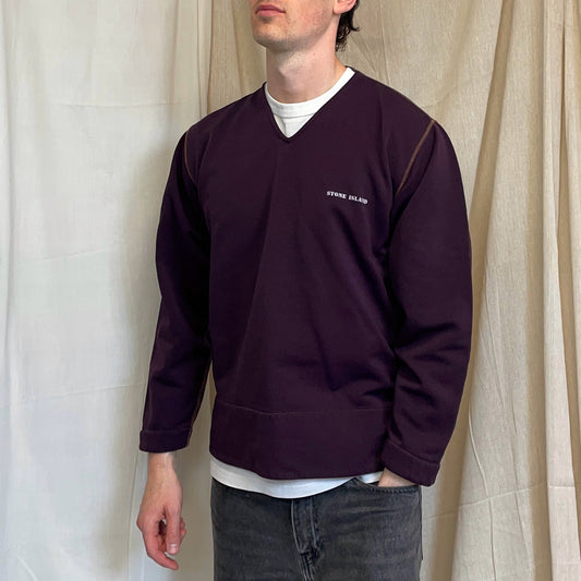 Stone Island Burgundy Purple 90s Contrast Stitch Technical Jumper