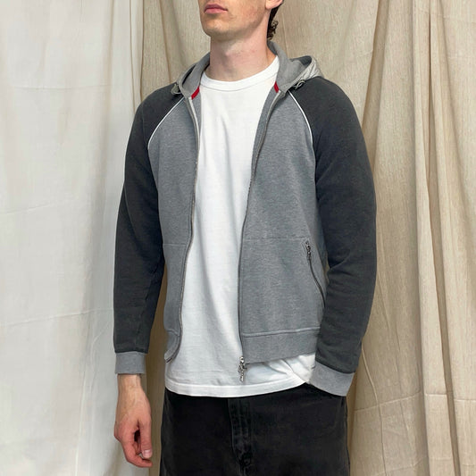 Prada Sport 00s Grey Panelled Nylon Hood Zip-Through Hoodie