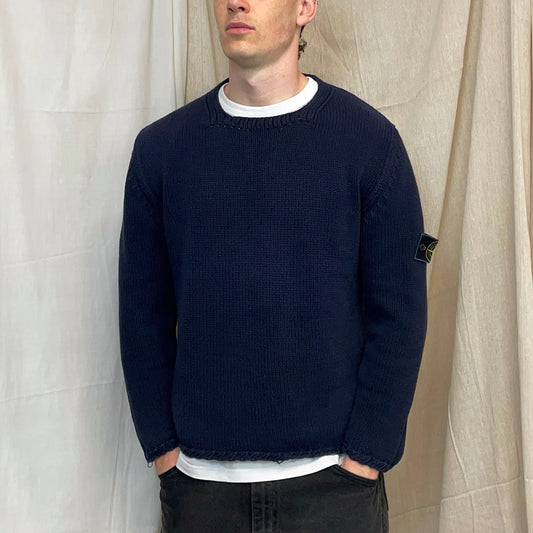 Stone Island Navy SS95 Chunky Raw-Edge Heavyweight Green Edge Badge Knit Jumper