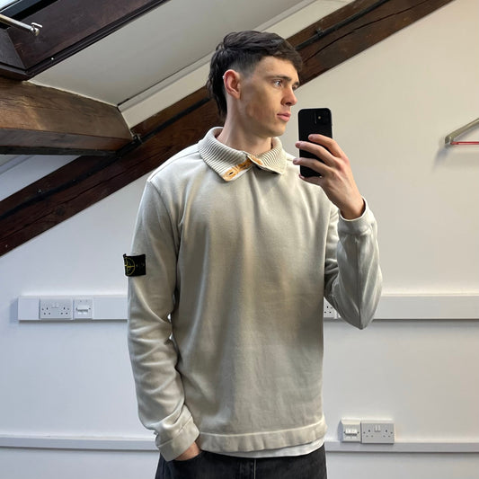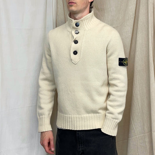 Stone Island Cream AW08 Button Collar Wool Knit Jumper