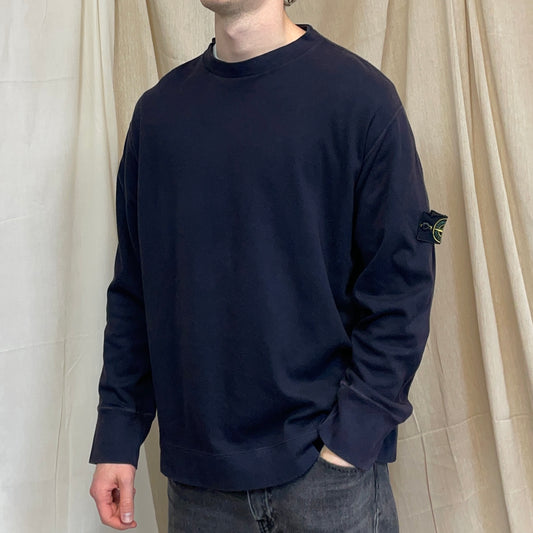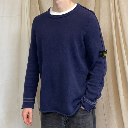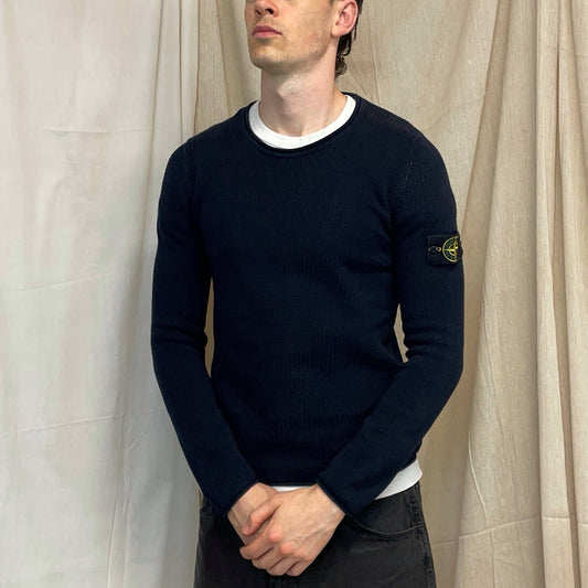 Stone Island Navy SS98 Midweight Knit Green Edge Badge Crewneck Jumper