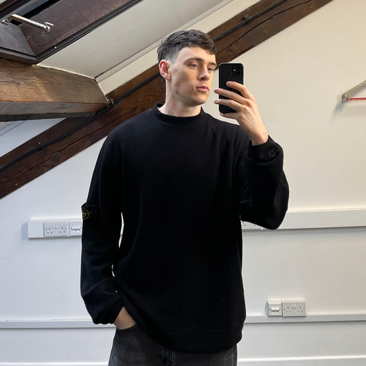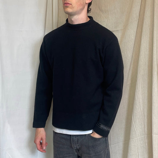 Stone Island Black AW97 Wool Blend Cuff Spellout Knit Jumper