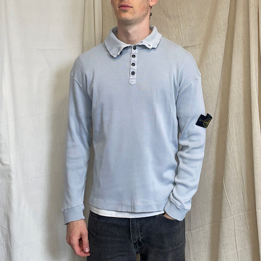 Stone Island Light Blue SS03 Button-Up Collar Fine-Rib Lightweight Jumper
