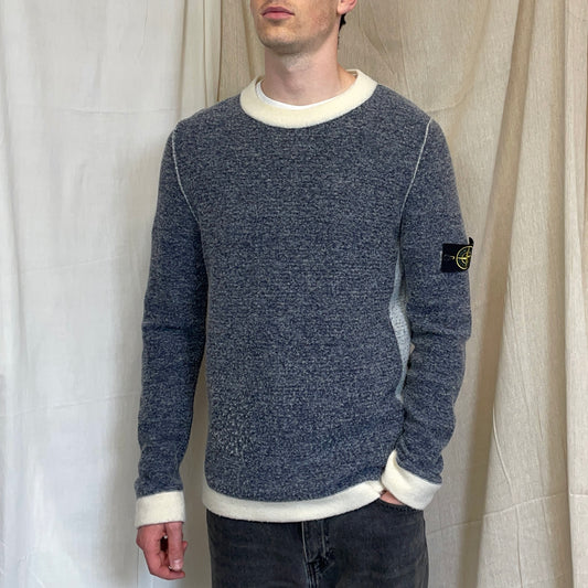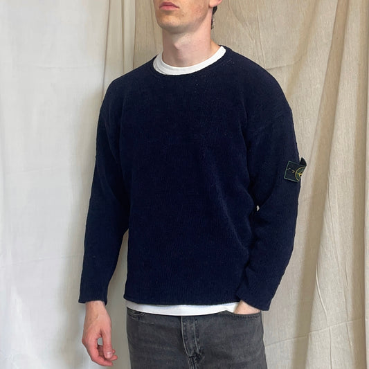 Stone Island Navy AW96 Angora Wool Chunky Minimal Knit Jumper