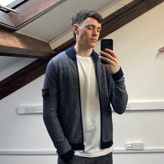 Stone Island Denims AW09 Grey Zip-Through Wool Knit Hoodie