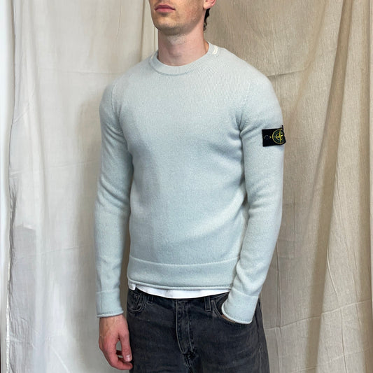 Stone Island Light Blue AW19 Midweight Soft Knit Wool Crewneck Jumper