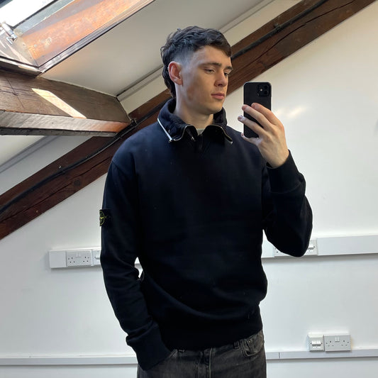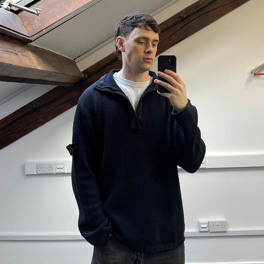 Stone Island Navy AW03 Cotton Half-Zip Fleece Jumper