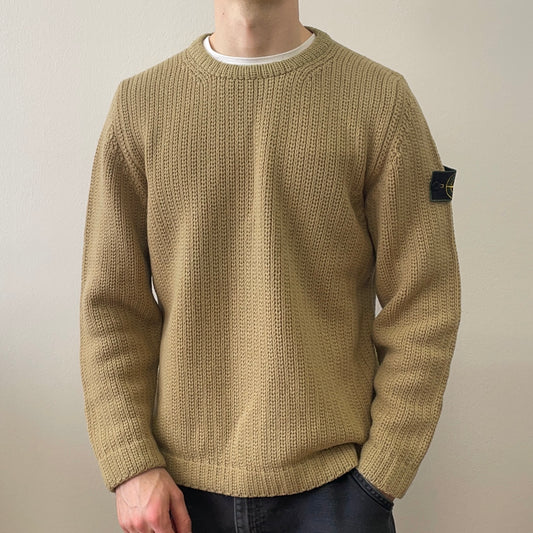 Stone Island Beige AW97 Chunky Wool Knit Green Edge Badge Crewneck Jumper