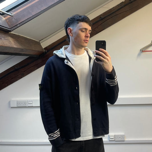 Stone Island Navy SS07 Contrast Hood Zip-Through Knit Cardigan Jumper
