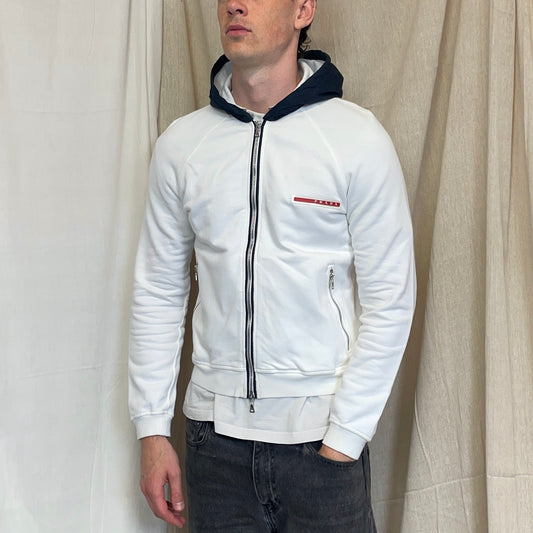 Prada Sport White 2006 Navy Hood Cotton Zip-Through Hoodie