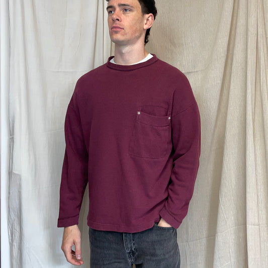 Stone Island Maroon 80s Compass Stitch Pocket Jumper
