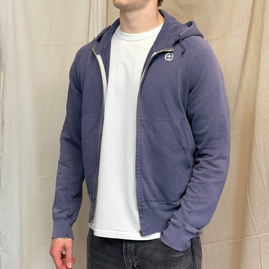 Stone Island Denims Blue 00s Sun-Faded Emblem Zip-Through Hoodie