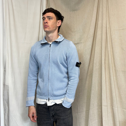 Stone Island Light Blue SS03 Silk Zip-Through Jumper