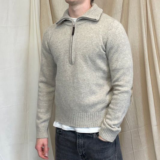 Prada Sport Grey 2007 Suede-Leather Patch Half-Zip Wool Knit Jumper