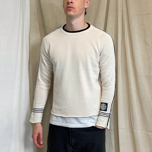 Stone Island Cream SS05 Midweight Cuff-Emblem Knit Jumper