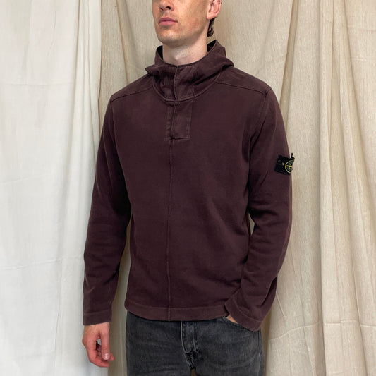 Stone Island Burgundy AW08 Button-Up Hooded Centre-Seam Pullover Jumper