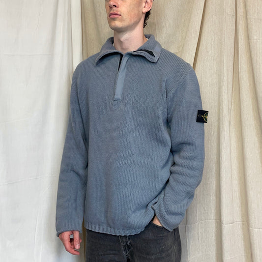 Stone Island Light Blue SS02 Heavyweight Half-Zip Knit Jumper