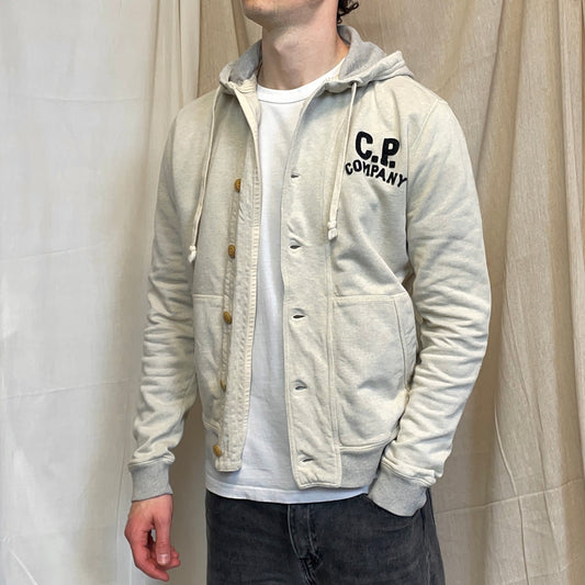 C.P. Company Grey Two-Tone Athletic Button-Up Hoodie