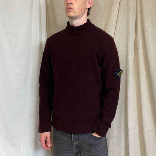 Stone Island Burgundy AW02 Wool Blend Fine Rib Knit Mockneck Jumper