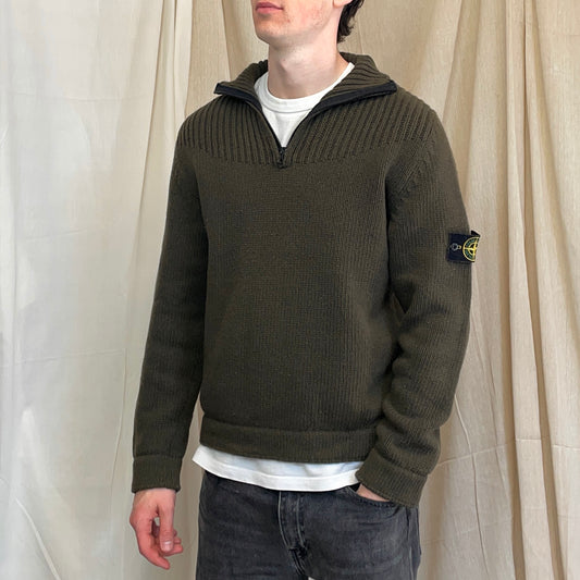 Stone Island Khaki 00s Wool Knit Half-Zip Jumper