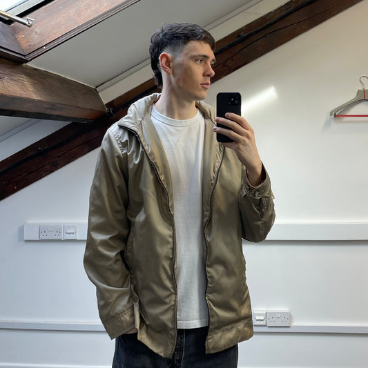 Prada Milano Beige Longline Concealed Hood Windbreaker Jacket
