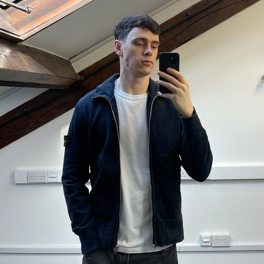 Stone Island Navy AW10 Textured Pockets Midweight Zip-Through Cotton Jacket
